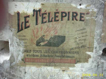 Le Télépire, chez tous les charbonniers et à l'usine, 21 rue Baron, Paris Batignolles - Sur l'image au format réel ont lit dans la partie rouge que le Télépire a obtenu la médaille d'argent à l'exposition du travail en 1885 - le plus nouveau - le plus rapide - le meilleur marché pour l'allumage des feux sans bois ni braise.