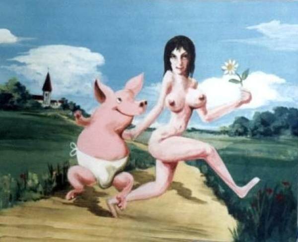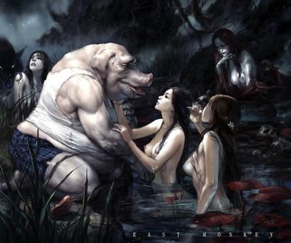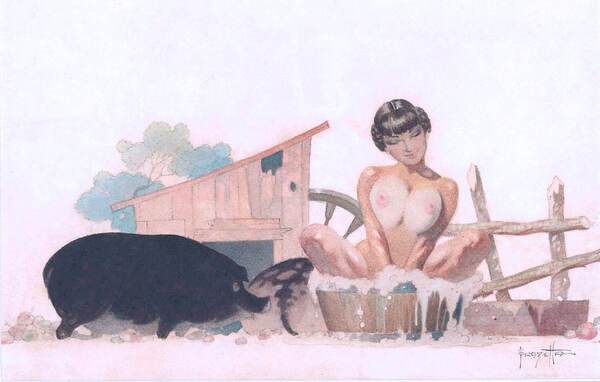 Une aquarelle der Franz Frazetta ( Pig girls)