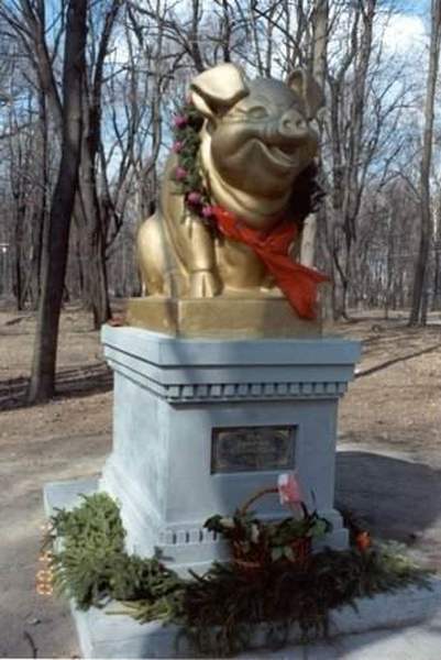En Ukraine, une statue à la gloire du cochon et même que les gens