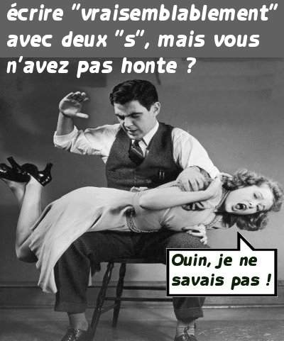 Annexe : Cet article sans prétention m'a valu quelques mails auxquels j'ai parfois répondus quand il n'étaient pas insultants. Sinon, ça part direct à la corbeille. Je n'ai pas répondu non plus à quelques fadas qui considèrent la simplification éventuelle de l'orthographe comme une atteinte aux droits du prolétariat (sic) ou comme un signe de la décadence de notre société (resic). Je publie quand même ce petit graphisme envoyé par une dame complètement hors sujet mais qui m'a fait bien rire !