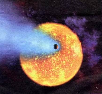 passe devant son étoile tandis qu'une partie de son atmosphère se volatilise