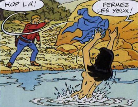 Inattendu : Roxanne quasi nue dans La fille au Père vert (les aventures de Chick Bill) : © 2002 Tibet et Editions du Lombard