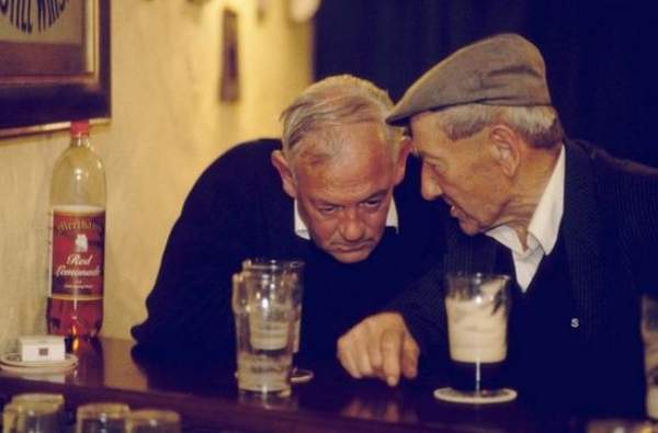 Deux hommes sont dans un bar et discutent :