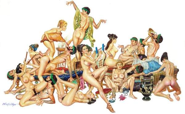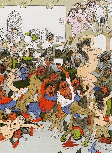 Deux illustrations de Blas Gallego (né en 1940) L'Orgie à travers