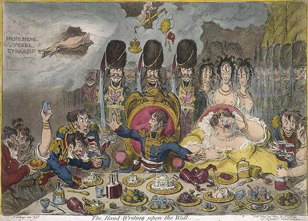 "La main écrivant sur le mur" par James Gillray (1757-1815) (J. Kent), 1803, Eau