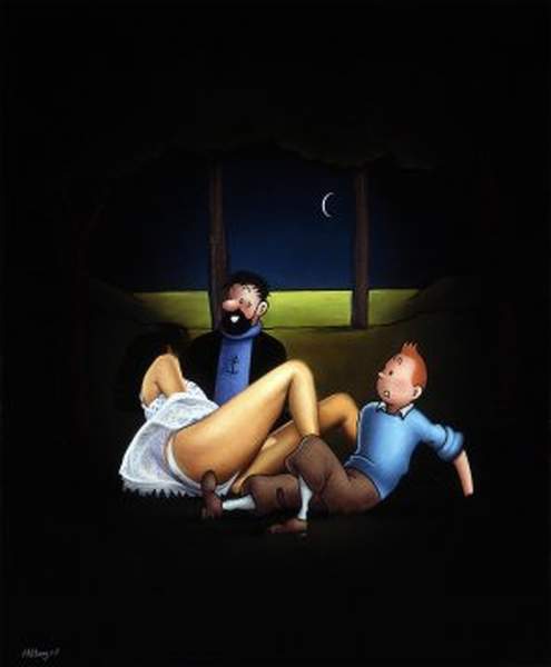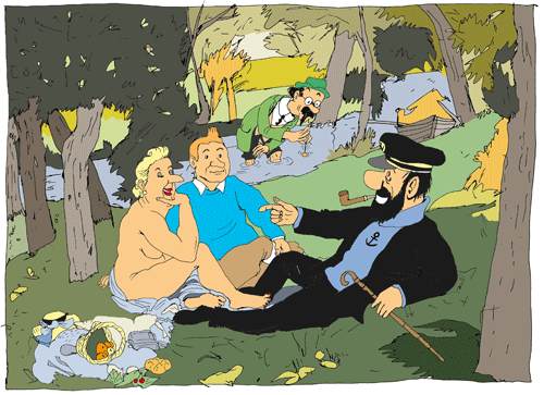 Un pastiche tintinesque du déjeuner sur l'herbe dessiné par
