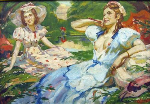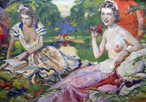 spécialité de piqueniques champêtres avec de jeunes femmes dépoitraillées.