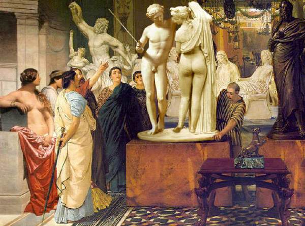 Lawrence Alma-Tadema (1836-1912) Une galerie de sculptures à Rome à
