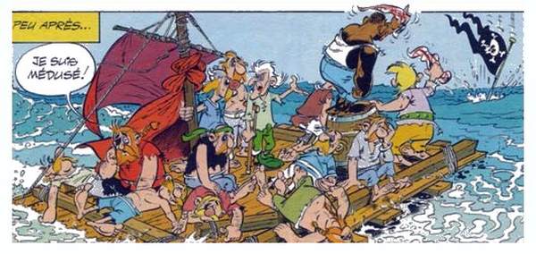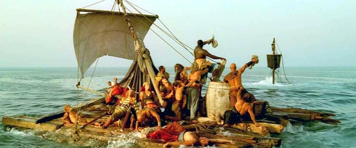 passagers du radeau livrés à leur sort, avec une quantité de vivres et
