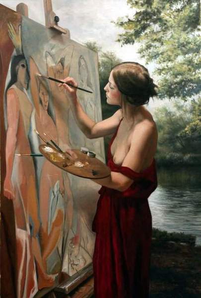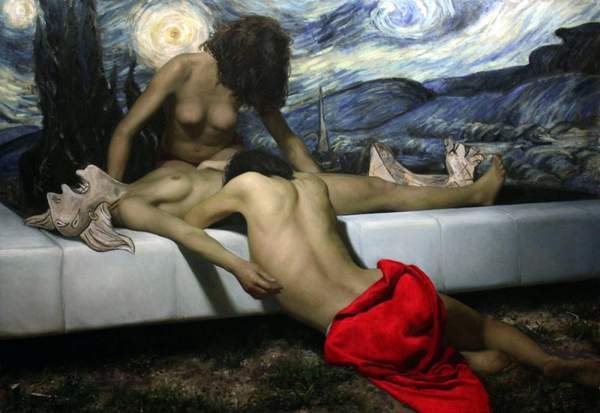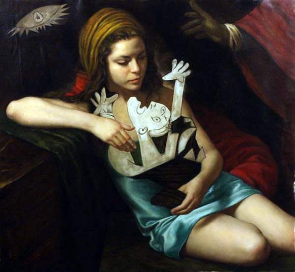 Cesar Santos... Une femme mutilée par Picasso, devant un décor de Van