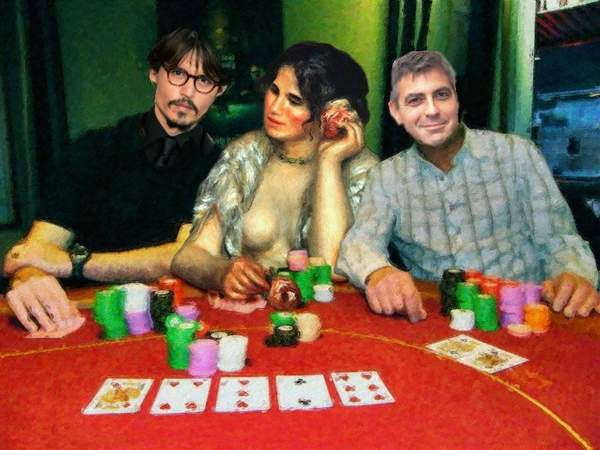 Gabrielle jouant au strip-poker avec Johnny Depp et George Clooney