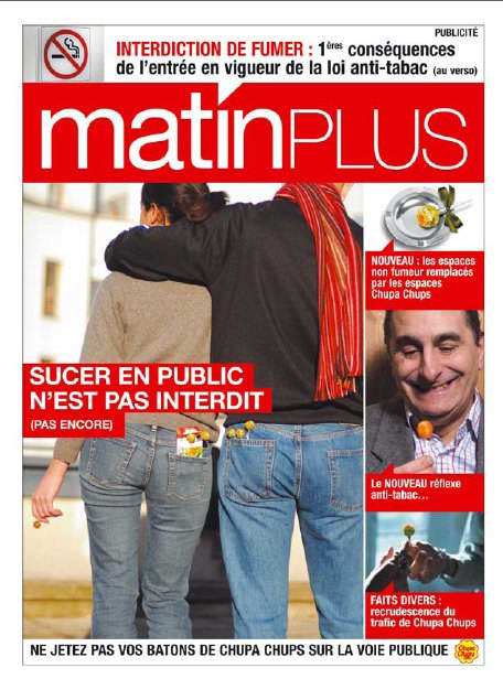 Ce n'est pas un fake, mais une véritable couverture publicitaire au profit de Chupa Chups, avec Matin plus