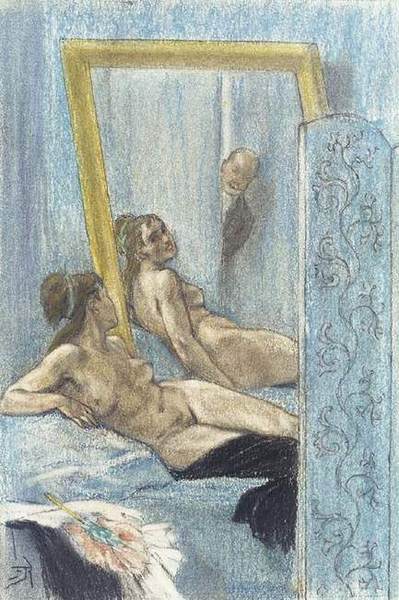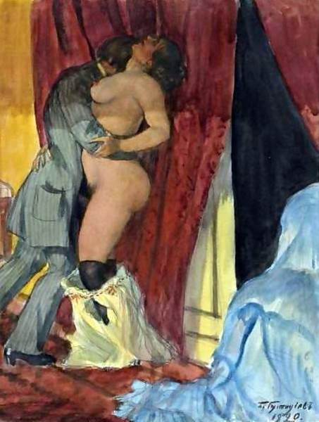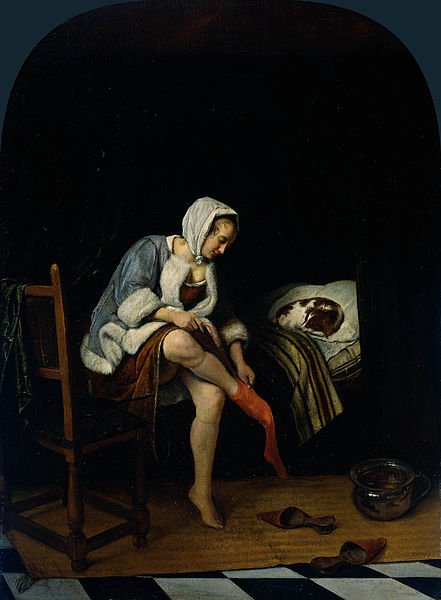 Ce tableau représente une prostituée qui enlève ses bas avant