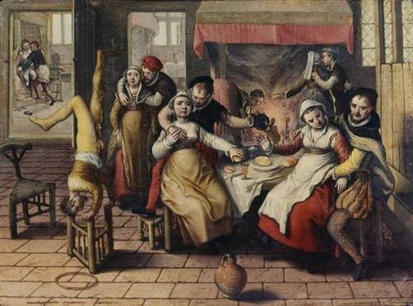 (v1500-v1566) peint vers 1540, le lieu dessiné est censé être un bordel , (Staatliche