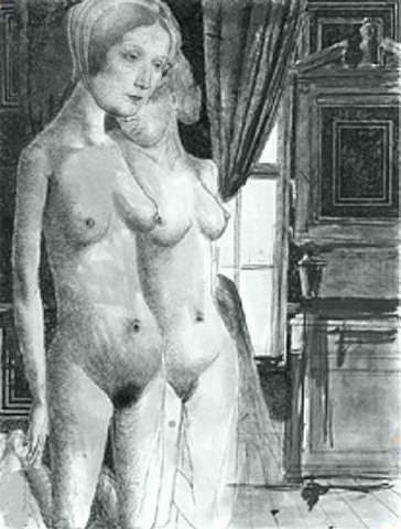 "toutes deux nues et ayant leurs chevelures épars comme épousées".