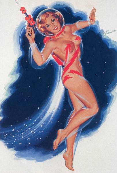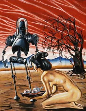 "Painting of Science Fiction Scene with Robot and Nude Woman" Jan