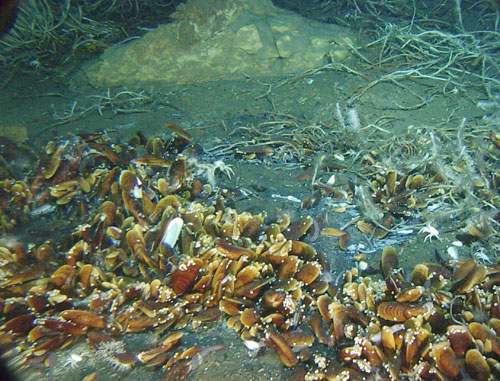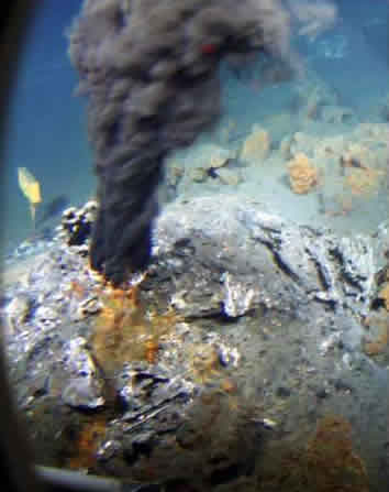 Les fumeurs noirs : (découvert en 1979 par le robot américain Alvin) . Les mouvements tectoniques auprès des dorsales océaniques provoquent des failles dans la croute sous-marine, l'eau s'infiltre, mais la chaleur la fait aussitôt remonter. En remontant elle entraine avec elle des minéraux rencontrés comme du souffre, du fer, du magnésium. C'est dans cet environnement que se développe une vie locale sans photosynthèse, cela va des bactéries à des espèces surprenantes comme Riftia pachyptila (un ver pouvant atteindre 2 mètres de long) ou Rimicaris exoculata (une crevette de 5 cm sans yeux). La durée de vie d'un fumeur noir est courte (une centaine d'année) mais ils s'en crée sans cesse des nouveaux au fur et à mesure de l'écartement des plaques.