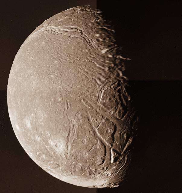 Photographies de la planète et des gros satellites : Miranda, Ariel, Umbriel,