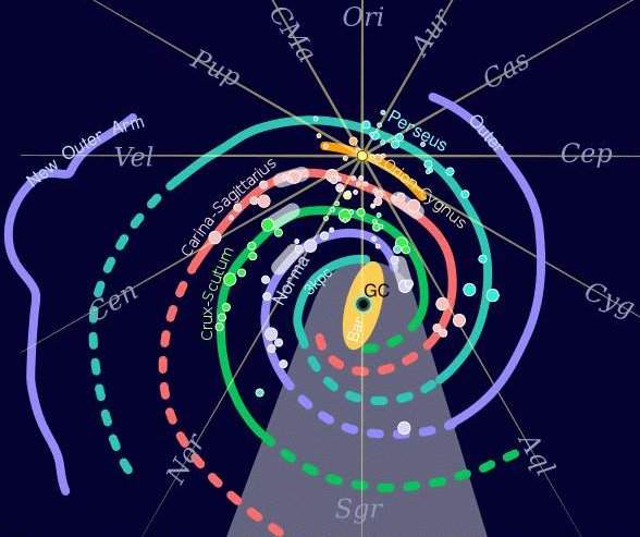 Spitzer ne confirme pas la présence de quatre grands bras spiraux dans notre Galaxie. La Voie Lactée ne contiendrait que deux bras principaux, ce qi ne veut pas dire que les autres ras n'existent pas...Ces observations corroborent d'autres' études récentes.