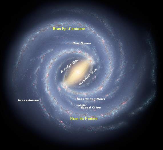Notre Galaxie, la voie lactée est une galaxie spirale, composée de bras principaux et de bras secondaires