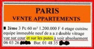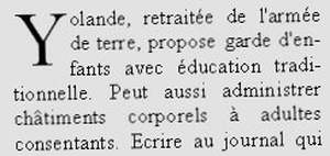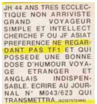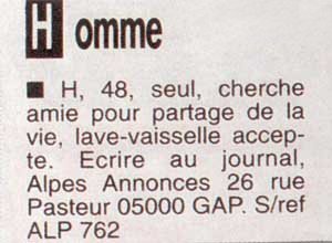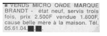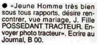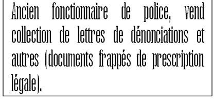 annonces présentées ici sont probablement (on ne peut jurer de rien) inédites