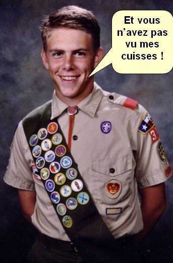 Scout : Petit gars habillé en niaiseux qui suit un grand niaiseux habillé en p'tit gars