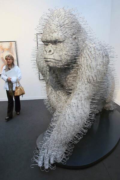 Gorilla (sculpture réalisé avec des morceaux de cintres métalliques.