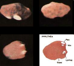 ![]() Le nom Amalthée a été suggéré par Camille Flammarion. Gaea est un cratère d'impact de 80 km de large et au moins 15 km de profondeur. L'autre a été nommé Pan. On a aussi nommé deux "montagnes", Mons Lyctas et Mons Ida |