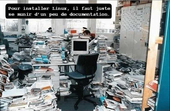 C'est vrai, Linux est un système d'exploitation ouvert au néophyte (on n'a besoin que 2 ou 3 ans d’études d'informatique système pour comprendre comment s'en servir), très facile d'installation (2 à 3 mois pour installer une machine avec tous ses périphériques).
