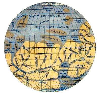 En 1877 l'astronome italien Giovanni Schiaparelli (1835-1910) cru voir et cartographia un réseau de très larges "canaux" artificiels sillonnant l'ensemble de la planète Mars.