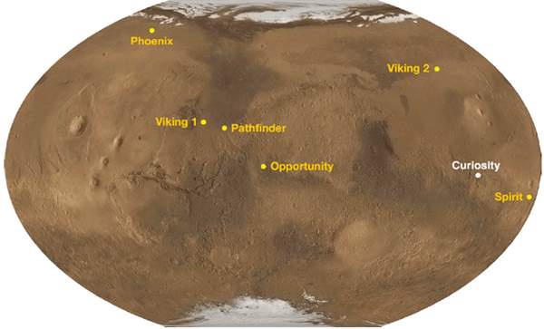| Curiosity (Mars Science Labatory - MSL) | 6 août 2012 |