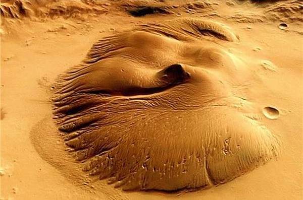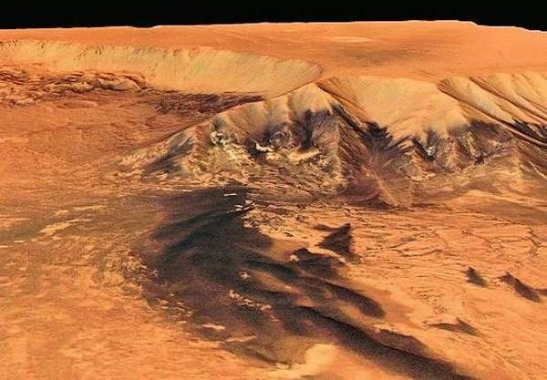 Photo : Mars Express. Le cratère mesure 100 km de diamètre, le