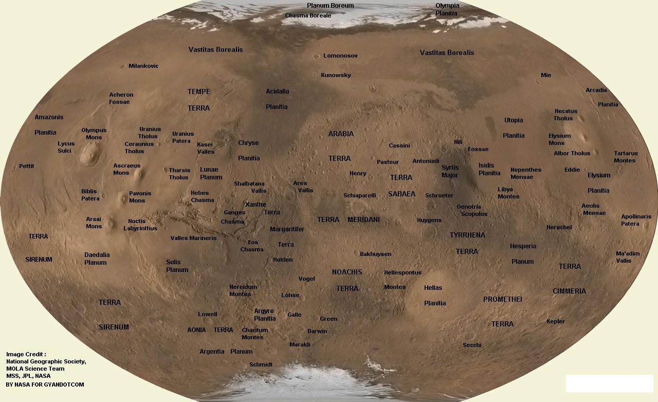 Marineris coupant la planisphère de Mars et son son survol par la sonde