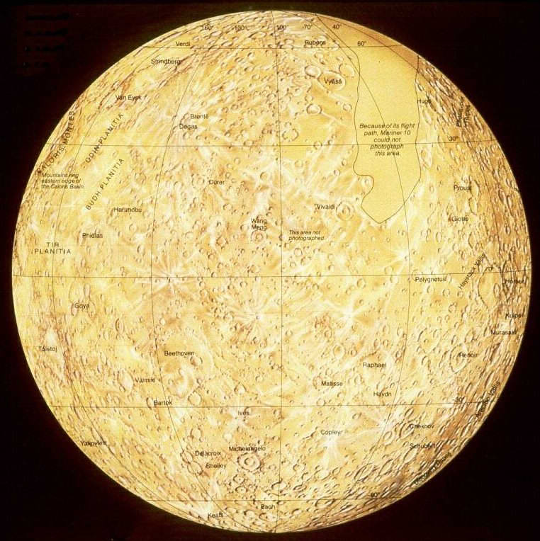 L'autre face de Mercure, jusqu'ici inconnue est dévoilée en janvier 2008 par la sonde Messenger