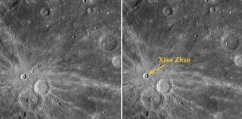 Le petit cratère Xia Zhao est une formation récente.. On remarque de longues et lumineuses tracées.