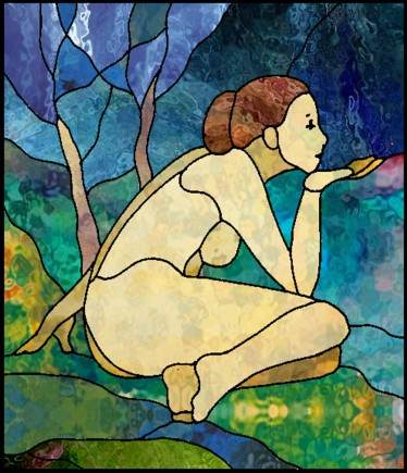 Joséphine devant le vitrail