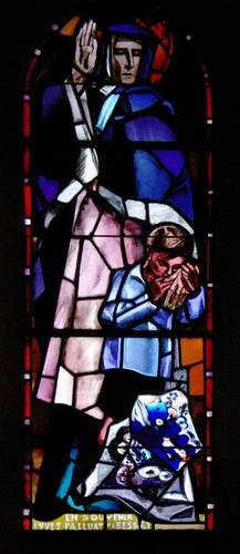 Dans l'église de Nervieux on trouve ça, c'est l'œuvre du Père Marie-Alain Couturier (1897-1954) Moine dominicain, artiste et théoricien autoproclamé de l'art sacré. Etrange rapport entre le moine et le gosse... Salut on ne peut plus curieux du moine... vous avez dit bizarre...